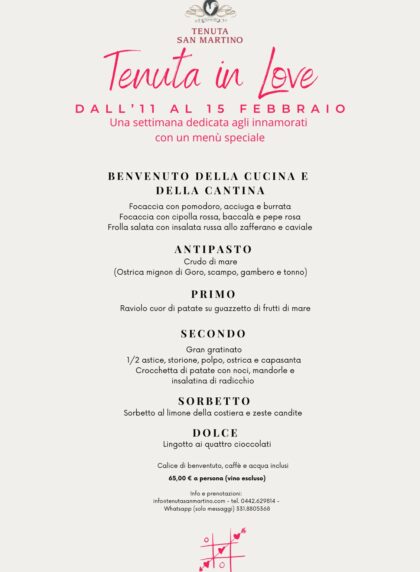 Dall'11 al 15 febbraio un menù dedicato agli innamorati e