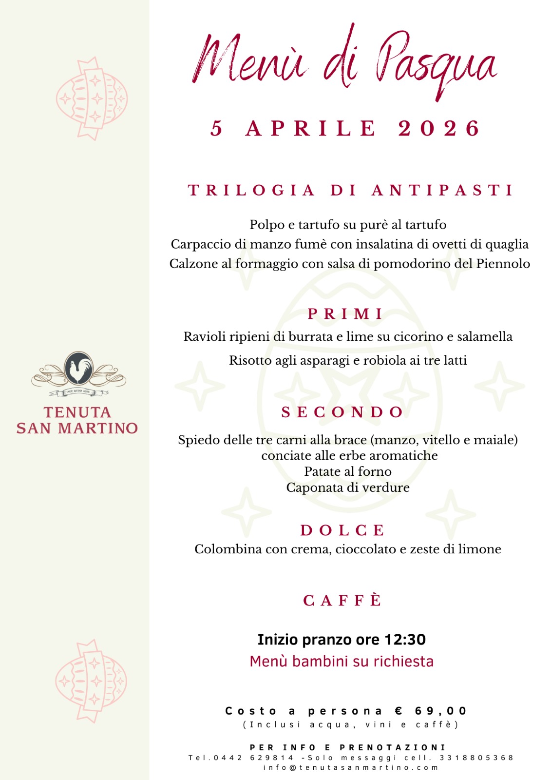 Il menù sarà disponibile per il pranzo di Pasqua, il 5 aprile 2026!