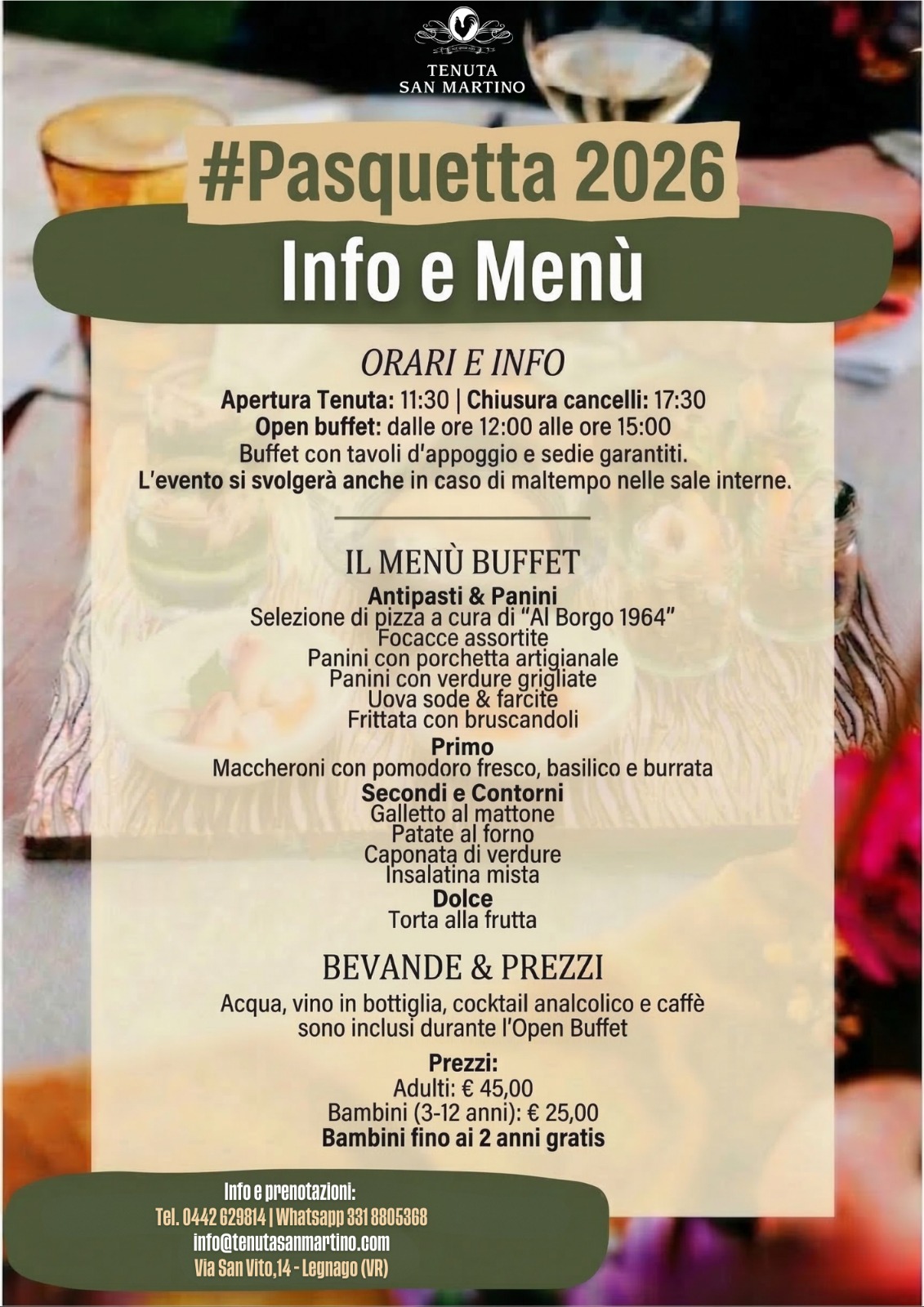 Lunedì 6 Aprile 2026 festeggia la Pasquetta immerso nel verde con il nostro Open Buffet.